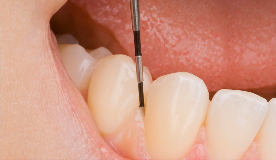 歯周ポケットの深さが3mmを超えると歯周病となります。軽度歯周病では、軽い出血や歯肉の腫れがみられますが、痛みを伴うような症状はあらわれないため、自覚症状がないまま進行してしまうことが多いです。